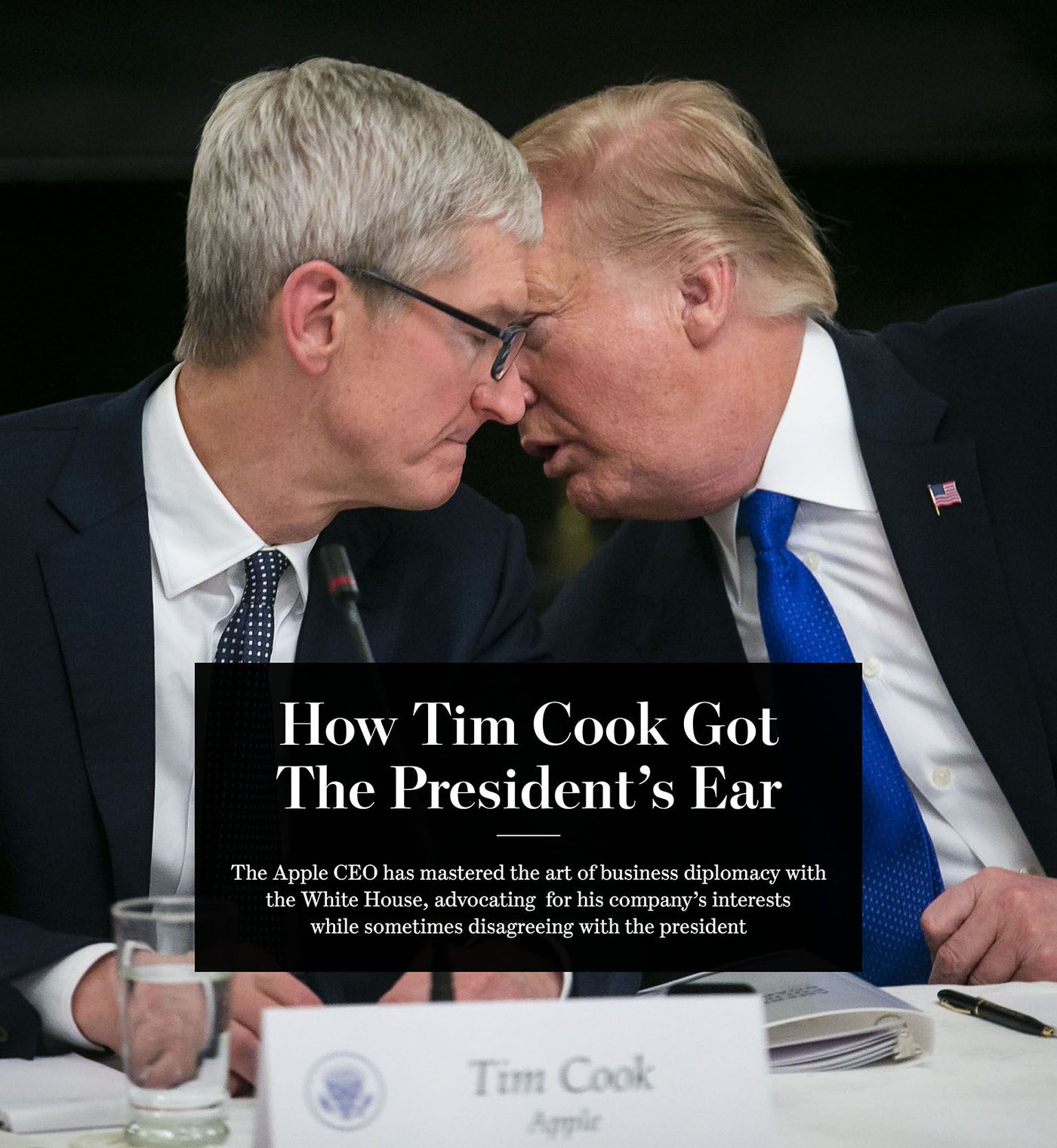 쿡 CEO는 또 백악관의 고위 관계자들과도 접촉했으며, 다른 경영자들과 달리 최근 몇 주간 TV 등에서 대통령이나 정책을 공개적으로 비판하지도 않았다.